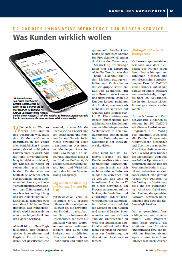 PC CADDIE opens the 2017 season with a bang. PC CADDIE is convinced that training leads to profit. A well-trained team translates into fast and excellent services, as well as innovative communication to (golf) customers. The company will support its customers with a knowledge voucher for the new digital and local seminar formats. Read the whole article