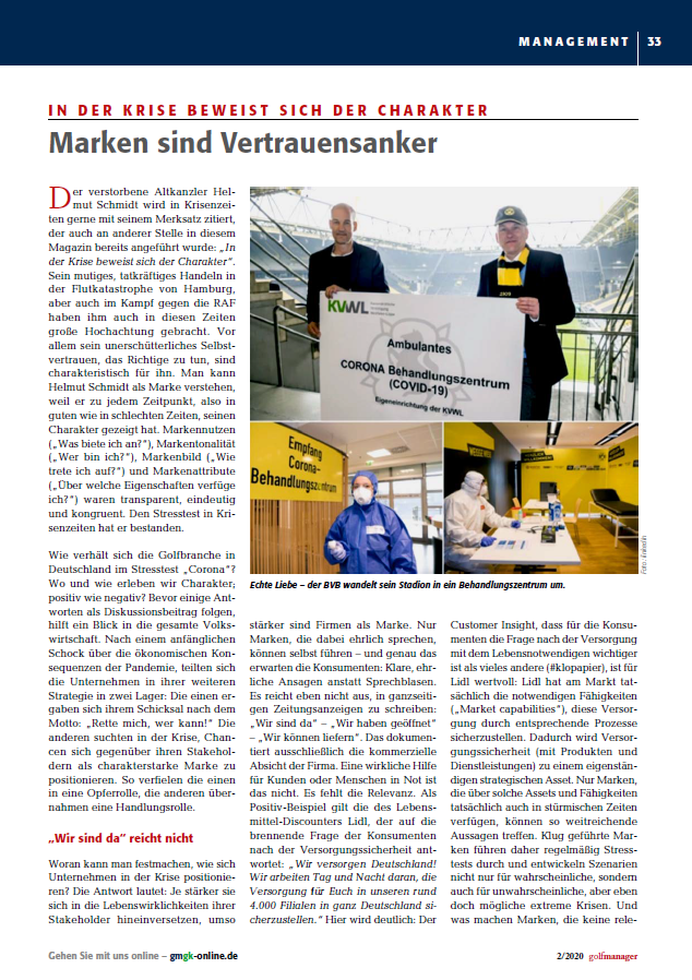 Der verstorbene Altkanzler Helmut Schmidt wird in Krisenzeiten gerne mit seinem Merksatz zitiert, der auch an anderer Stelle in diesem Magazin bereits angeführt wurde:"In der Krise beweist sich der Charakter". Weiter zum Artikel
