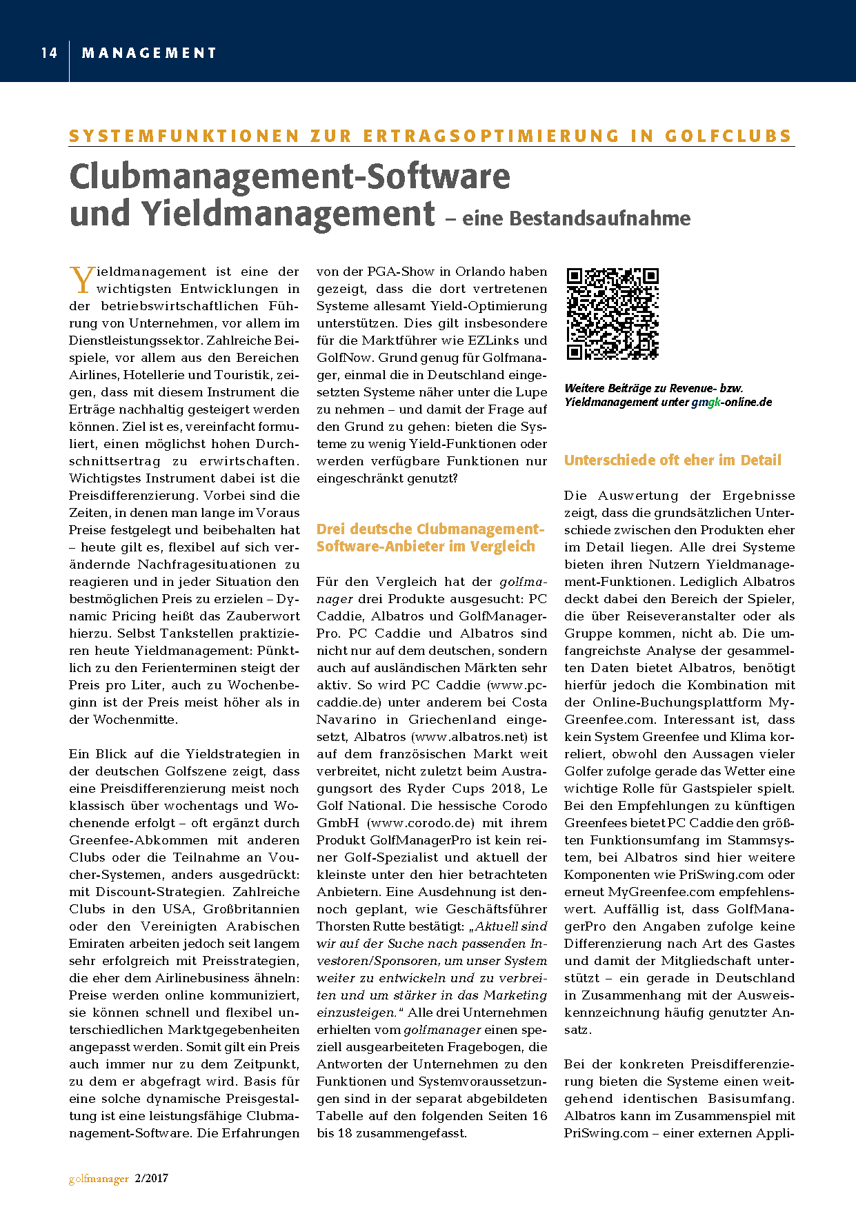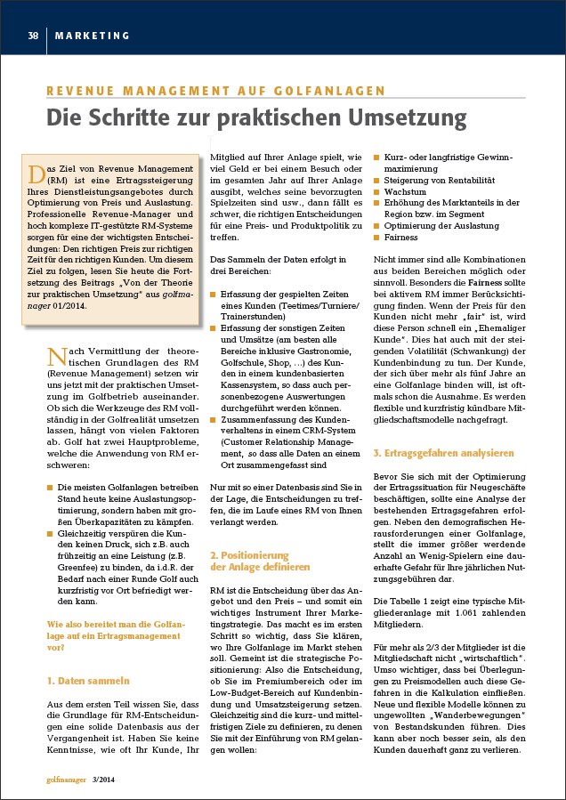 What are the preconditions for a functioning revenue management? What is the purpose of revenue management? How advanced is the German golf industry in this area? Read the whole article