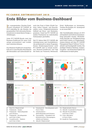 Starting with 2019, PC CADDIE uses this powerful customer dashboard to visualize all the key golf-related information for all its customers in a clear design. Each PC CADDIE customer will be able to personalize and pre-define the Business Dashboard for their golf course. Read the article in full