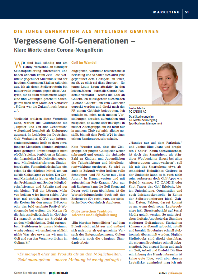 Vergessene Golf-Generationen - Klare Worte einer Corona-Neugolferin